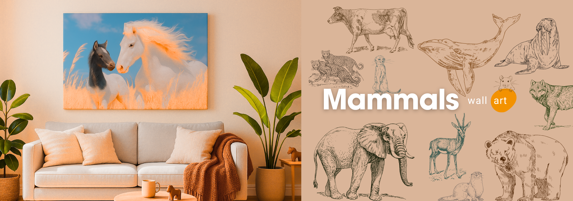 Decorating with animal-themed wall art is more than style—it's about emotion, storytelling, and celebrating what connects us to nature. The mammals we feature in our art prints are chosen not only for their beauty but for the universal meanings they carry: strength, loyalty, wisdom, curiosity, playfulness, and freedom.