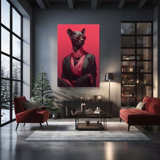 Elegant Black Panther with Red Sunglasses